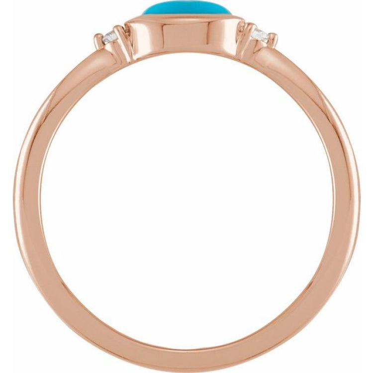 72315 / Ring / Set / 14K Rose Gold / Natural Turquoise / Oval / 5 X 3 Mm / Natural Diamond / Polished / Natural Turquoise And .03 Ctw Natural Diamond Bezel-Set Cabochon Ring