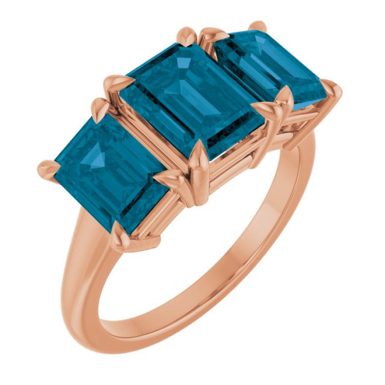 72442 / Ring / Set / 14K Rose Gold / Natural London Blue Topaz / Emerald / 8 X 6 Mm / Natural London Blue Topaz / Polished / Natural London Blue Topaz Three-Stone Ring