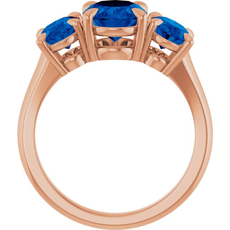 72442 / Ring / Set / 14K Rose Gold / Lab-Grown Blue Sapphire / Oval / 9 X 7 Mm / Lab-Grown Blue Sapphire / Polished / Lab-Grown Blue Sapphire Three-Stone Ring