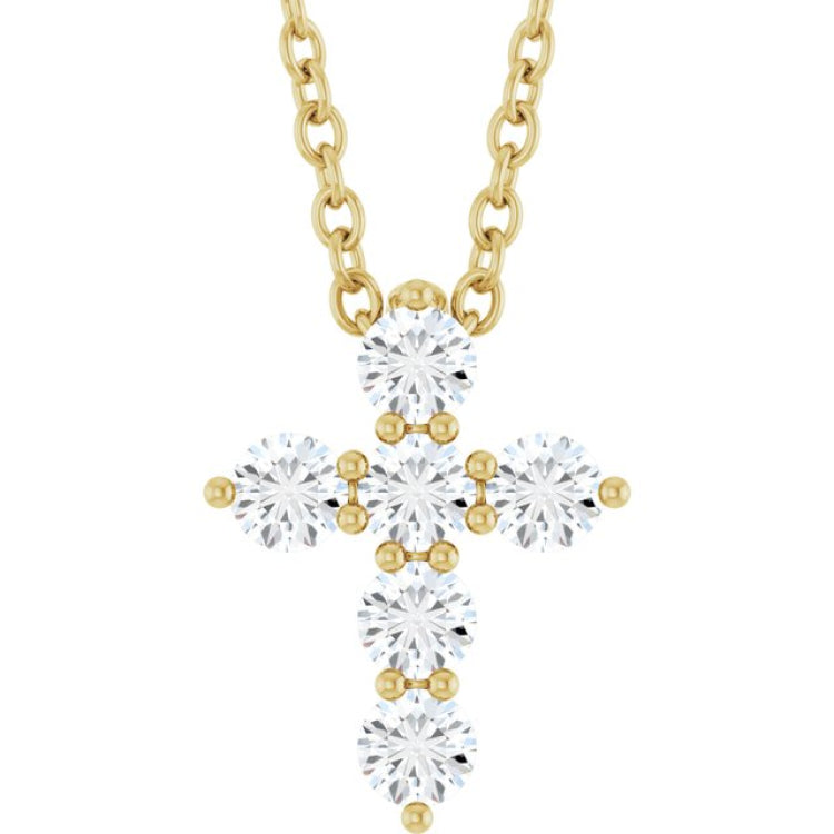 14K Yellow Gold 1/4 CTW Natural Diamond Cross 16-18" Necklace