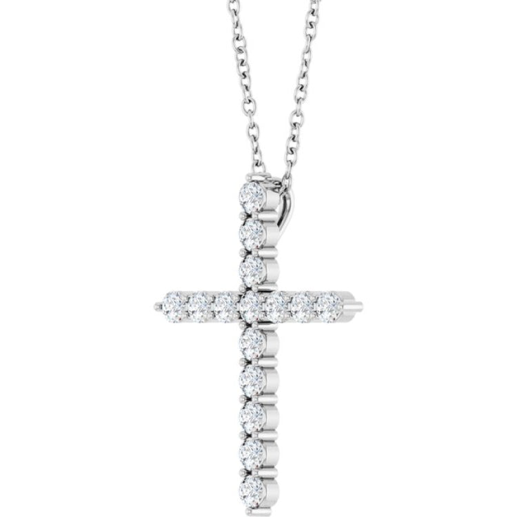 Platinum 1/2 CTW Natural Diamond Cross 16-18" Necklace