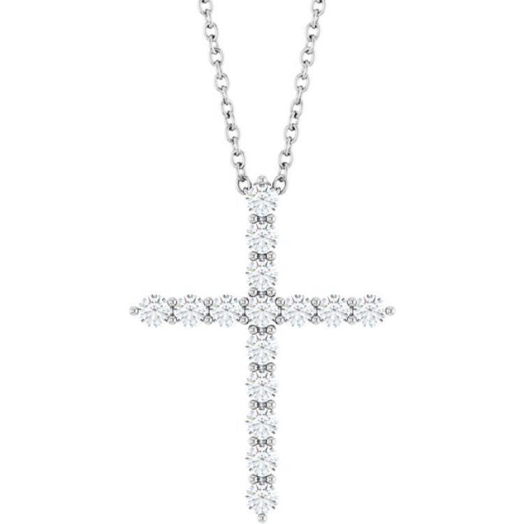 R42359 / Necklace / Set / 14K White Gold / Round / Natural Diamond / 21.29 X 16.31 Mm / 2Mm :: 1/2 Ctw / I1, G-H / 16-18 In / Polished / 1/2 Ctw Natural Diamond Cross Necklace