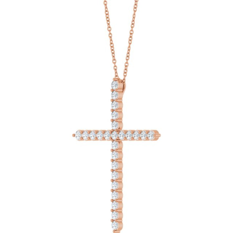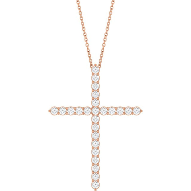 R42359 / Necklace / Set / 14K Rose Gold / Round / Lab-Grown Diamond / 37.23 X 27.62 Mm / 2.2Mm :: 1 Ctw / Si1-Si2, G-H / 16-18 In / Polished / 1 Ctw Lab-Grown Diamond Cross Necklace