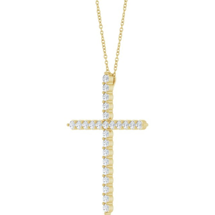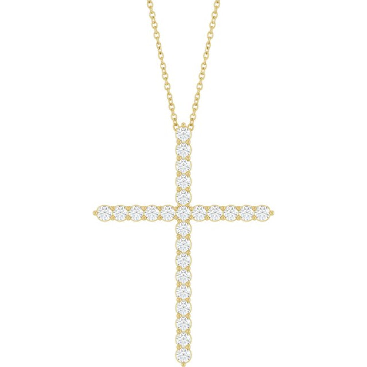 R42359 / Necklace / Set / 14K Yellow Gold / Round / Lab-Grown Diamond / 37.23 X 27.62 Mm / 2.2Mm :: 1 Ctw / Si1-Si2, G-H / 16-18 In / Polished / 1 Ctw Lab-Grown Diamond Cross Necklace