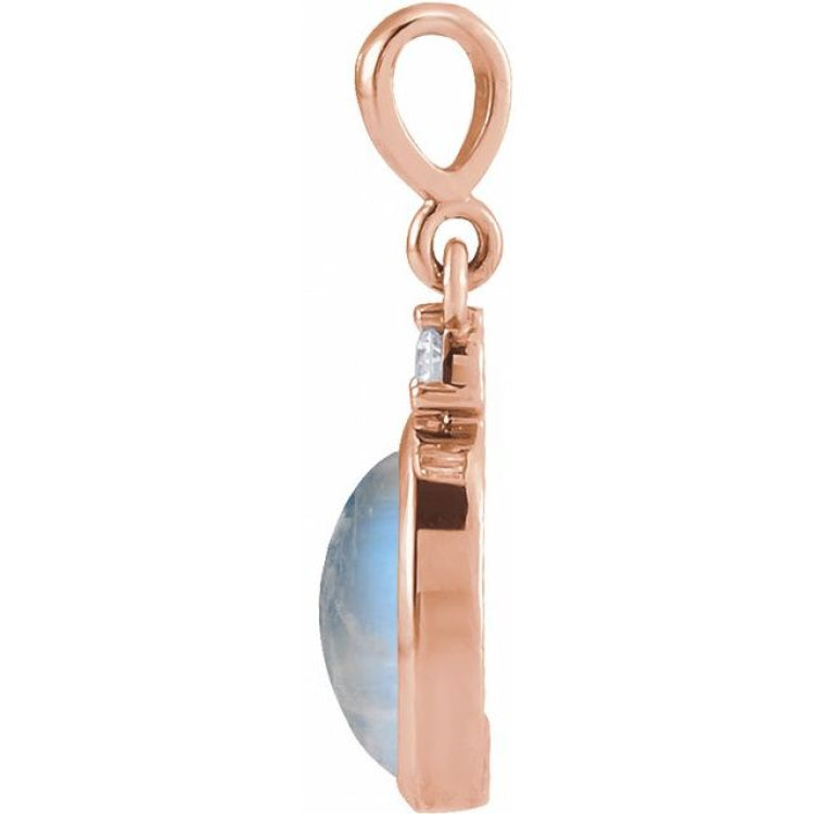 14K Rose Gold 5x3 mm Natural Rainbow Moonstone & .02 CT Natural Diamond Cabochon Pendant