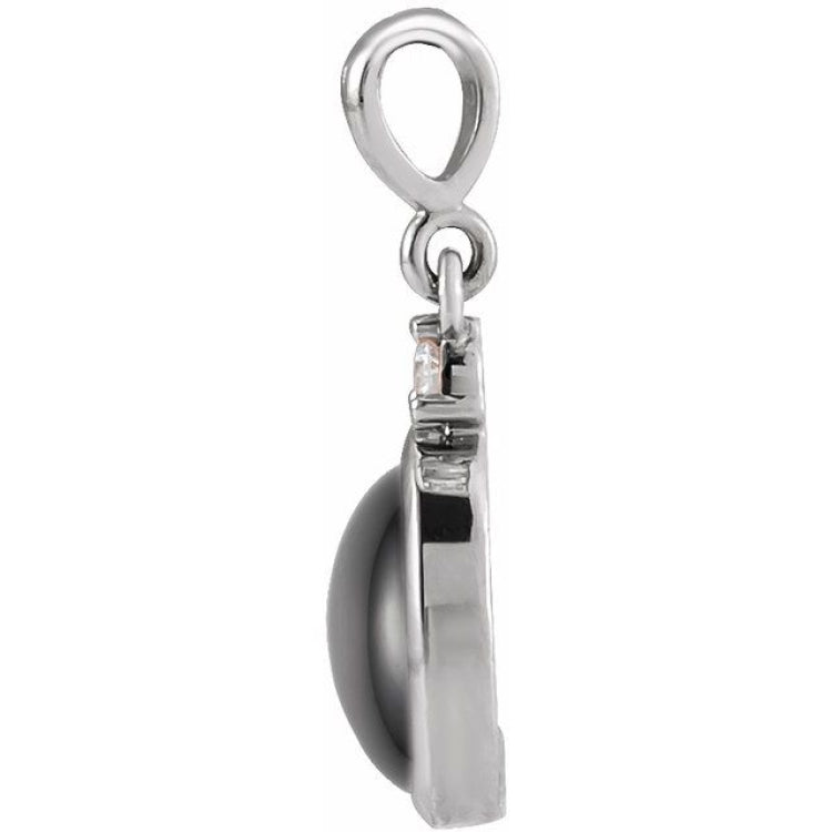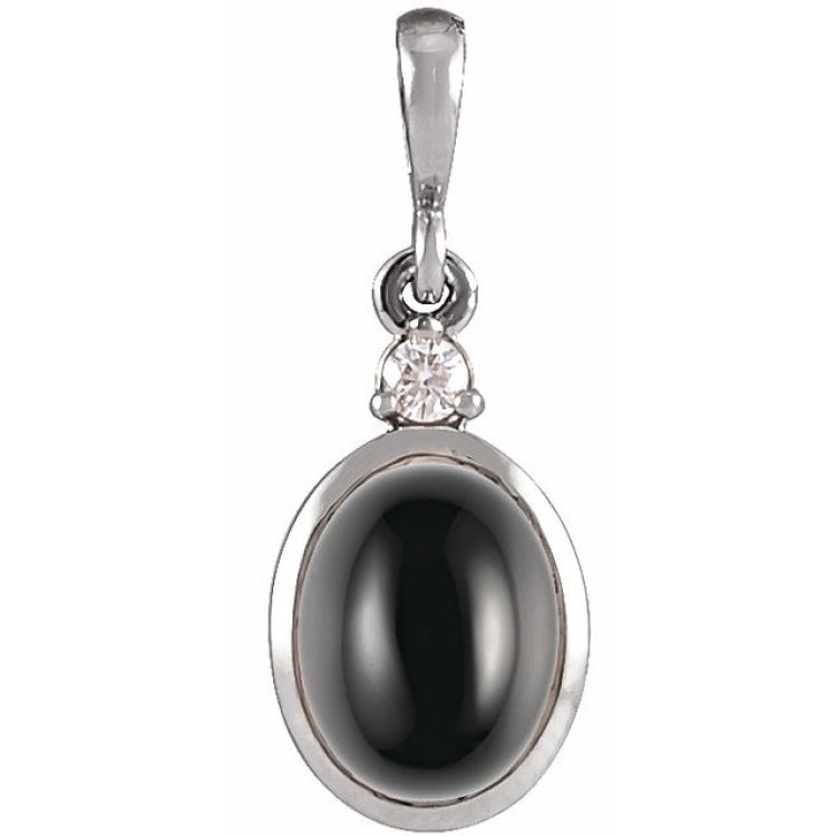 14K White Gold 5x3 mm Natural Black Onyx & .02 CT Natural Diamond Cabochon Pendant