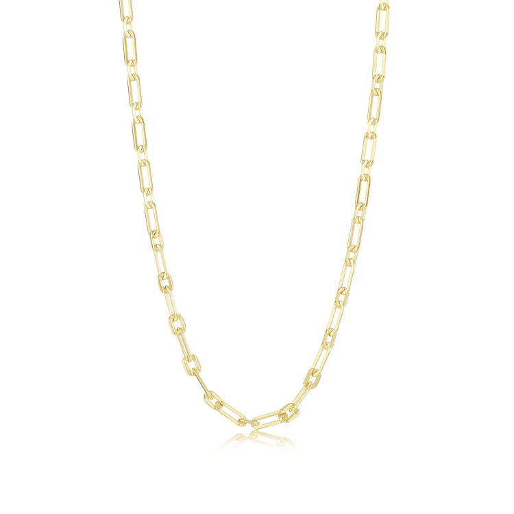 The Charlie Chain in small is a sleek and timeless paperclip necklace designed for effortless elegance and everyday versatility. Crafted from sterling silver and plated in gold, this modern classic is perfect for layering or wearing solo. Measuring 20 inches in length and finished with a secure lobster clasp.
