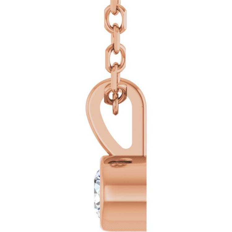 14K Rose Gold .06 CT Natural Diamond Bezel-Set Solitaire 16-18" Necklace