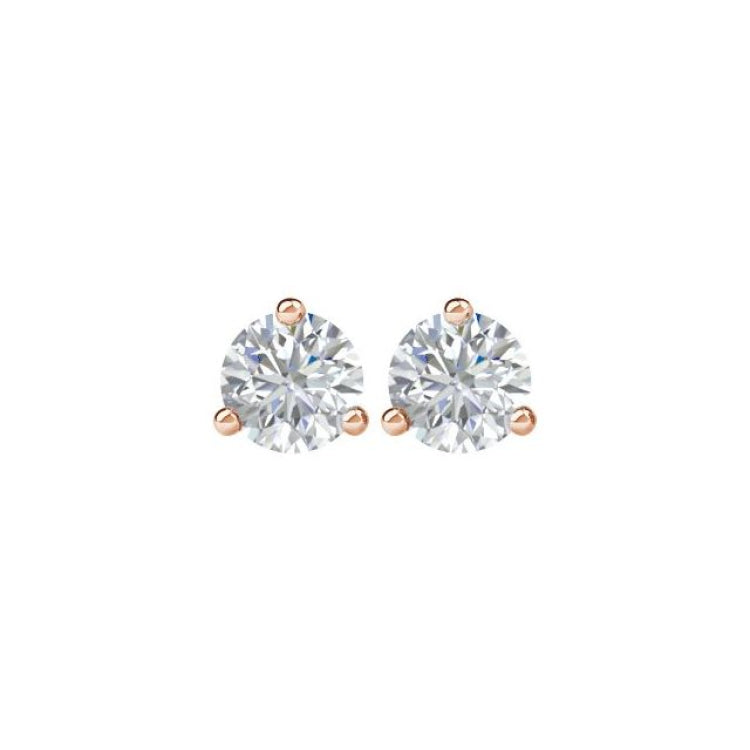 66233 / 14K Rose Gold / Set / Round / Natural Diamond / Pair / 5.75Mm :: 1 1/2 Ctw / I3, G-H / Friction / Friction Backs Included / 3-Prong / Polished / 1 1/2 Ctw Natural Diamond Stud Earrings